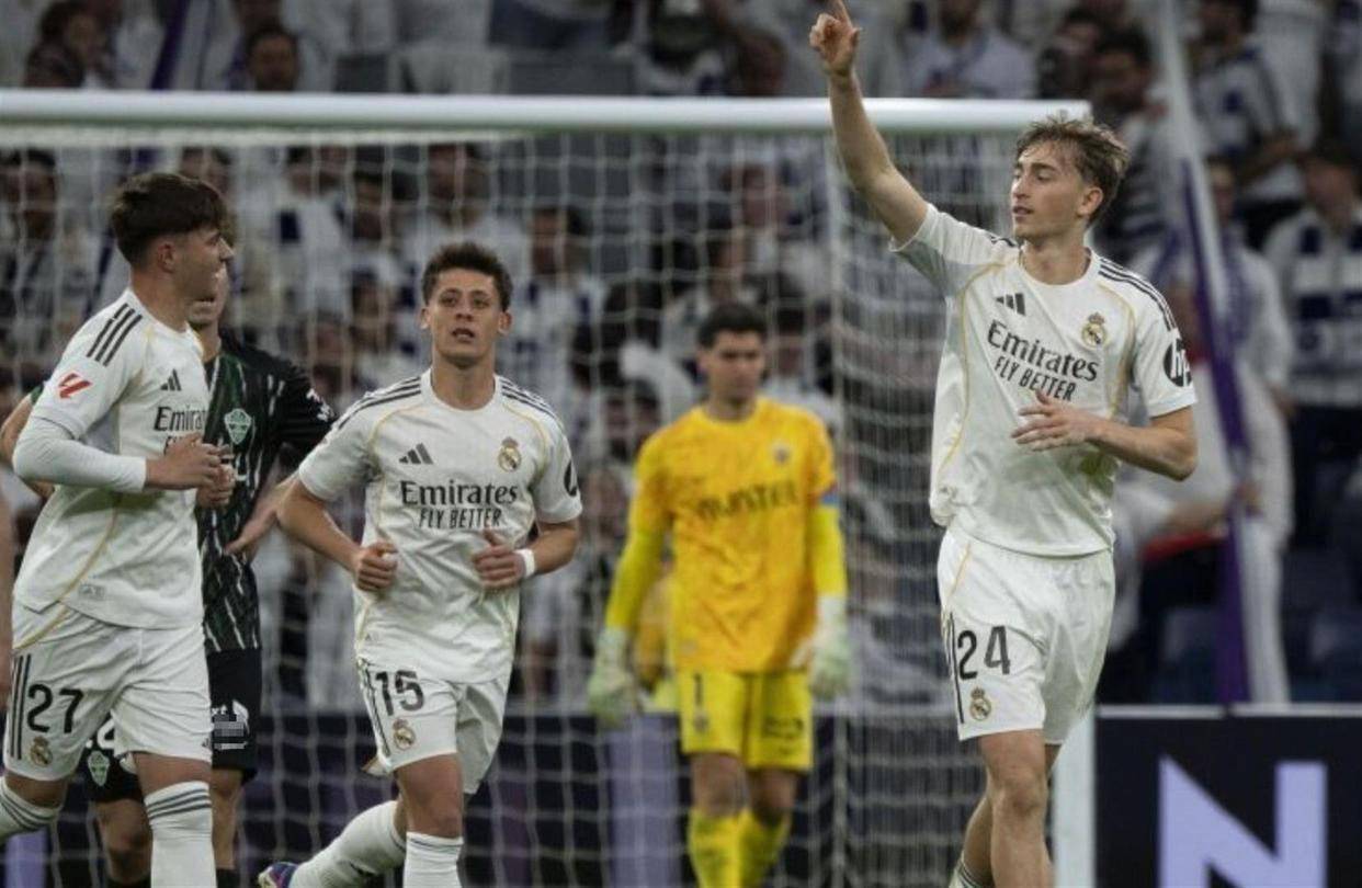 比赛尾声阶段出现小插曲,第85分钟,卡马文加后场传球失误,导致队友曼努埃尔-安赫尔不慎自摆乌龙,埃尔切扳回一城。 但这个失球并未影响结局,反而衬托了最后时刻的高潮。 第89分钟,皇马后场断球,居莱尔在本方半场距球门约60米处,观察到对方门将站位靠前,未作任何调整直接起脚吊射,皮球划过一道极高的抛物线,在所有人惊愕的目光中坠入球网。 这个进球锁定了4-1的胜局,也让居莱尔获得了全场最高的8.2分评分。
